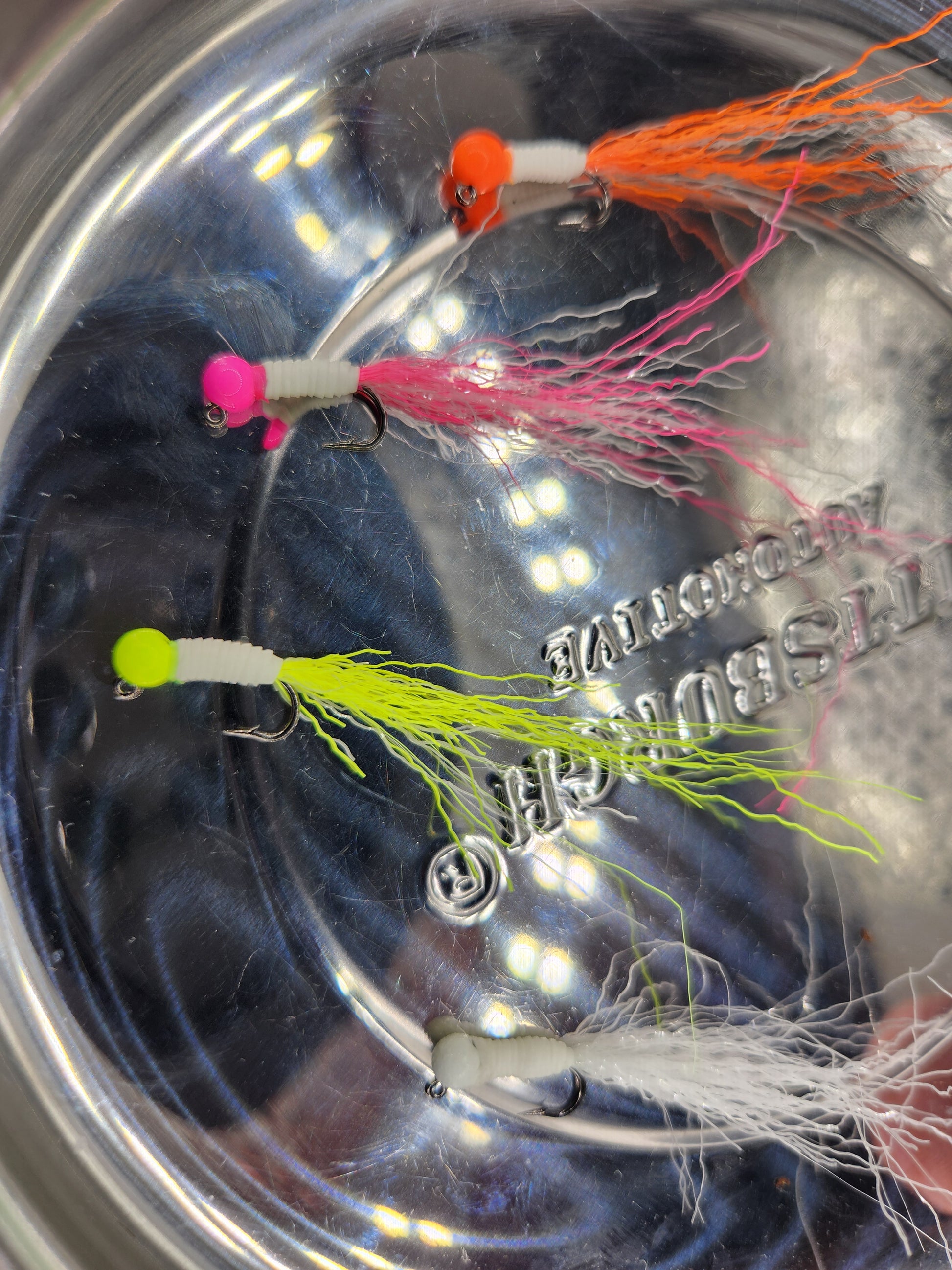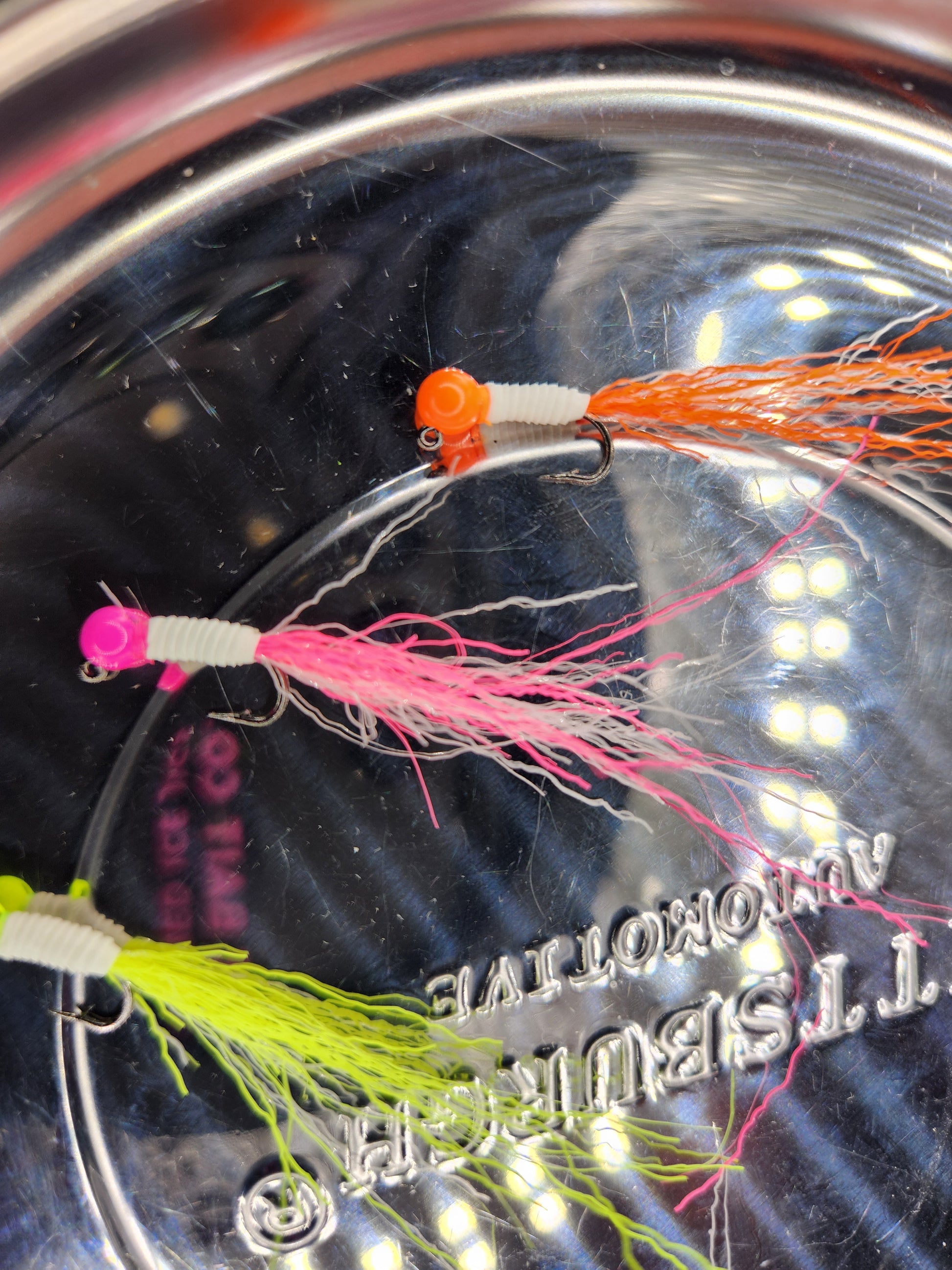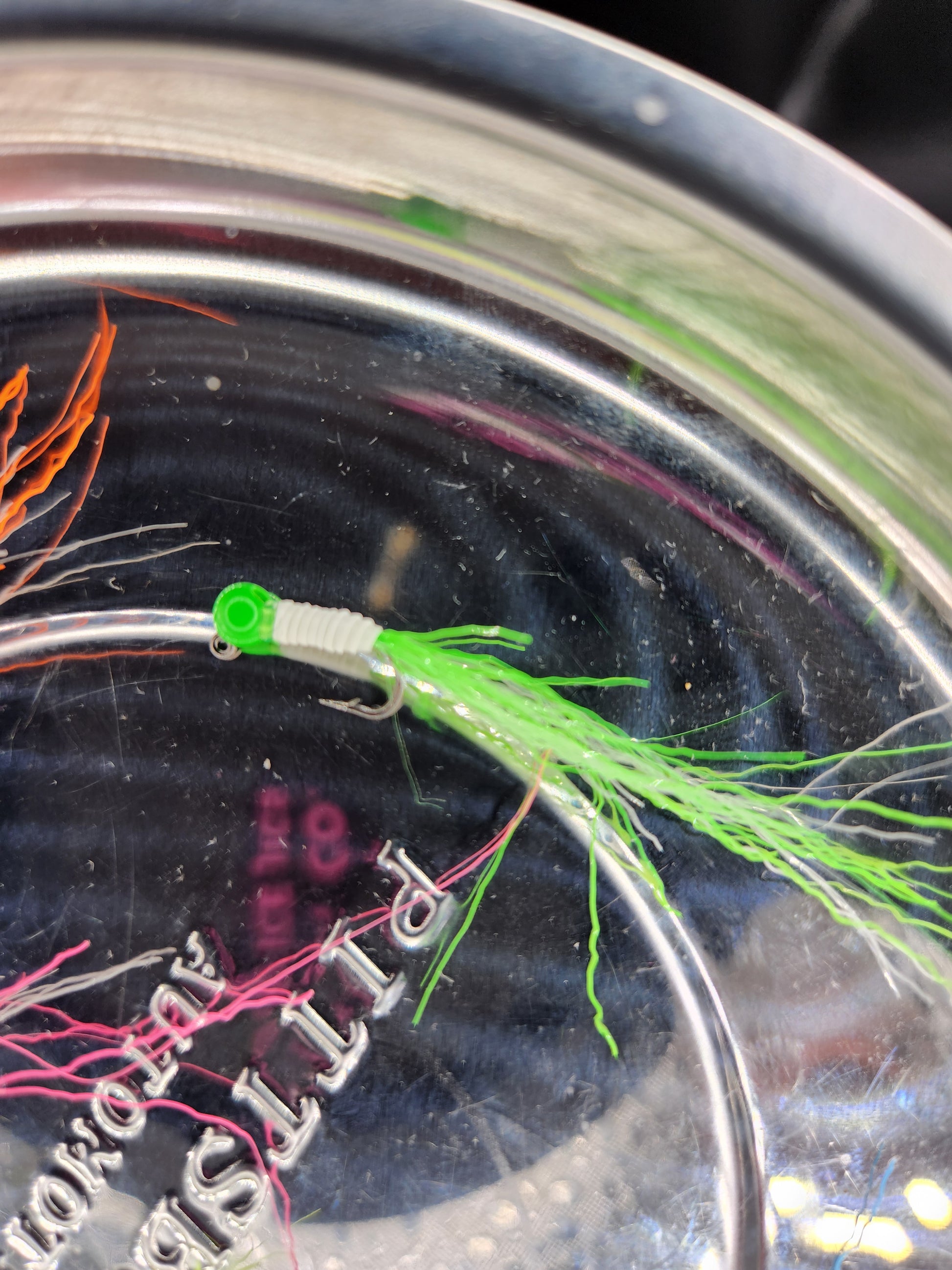 Color match head, thread, and tail. Glow body with glow tied into the tail. These look amazing in the water with or without the glow.