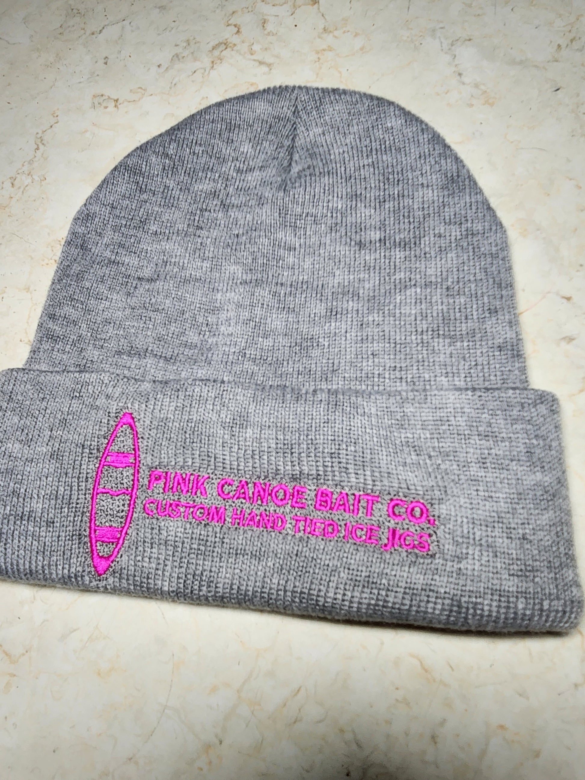 Premium beanies with the Pink Canoe Bait Co. logo embroidered across the front!