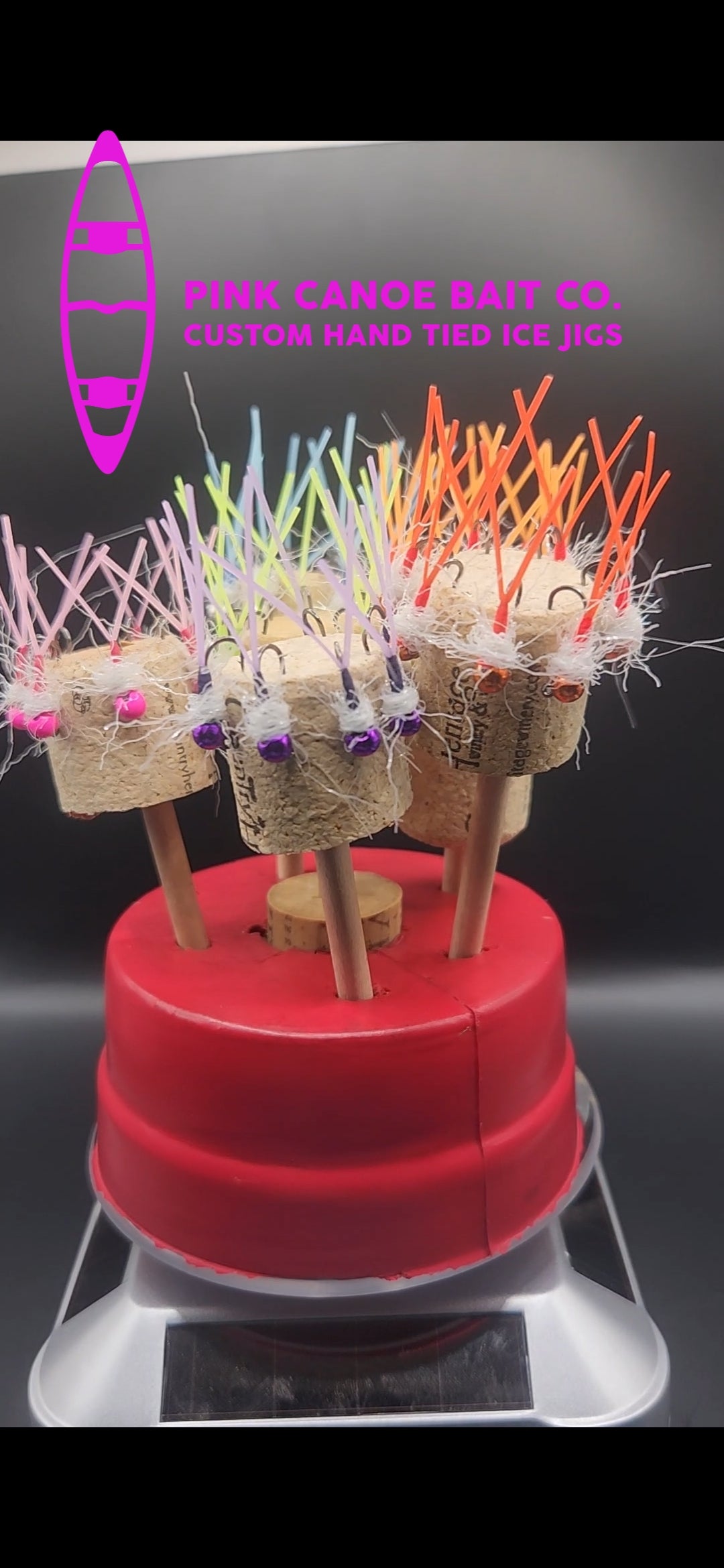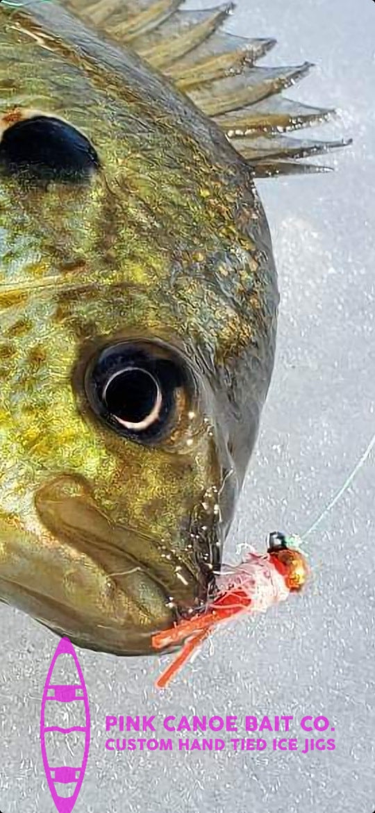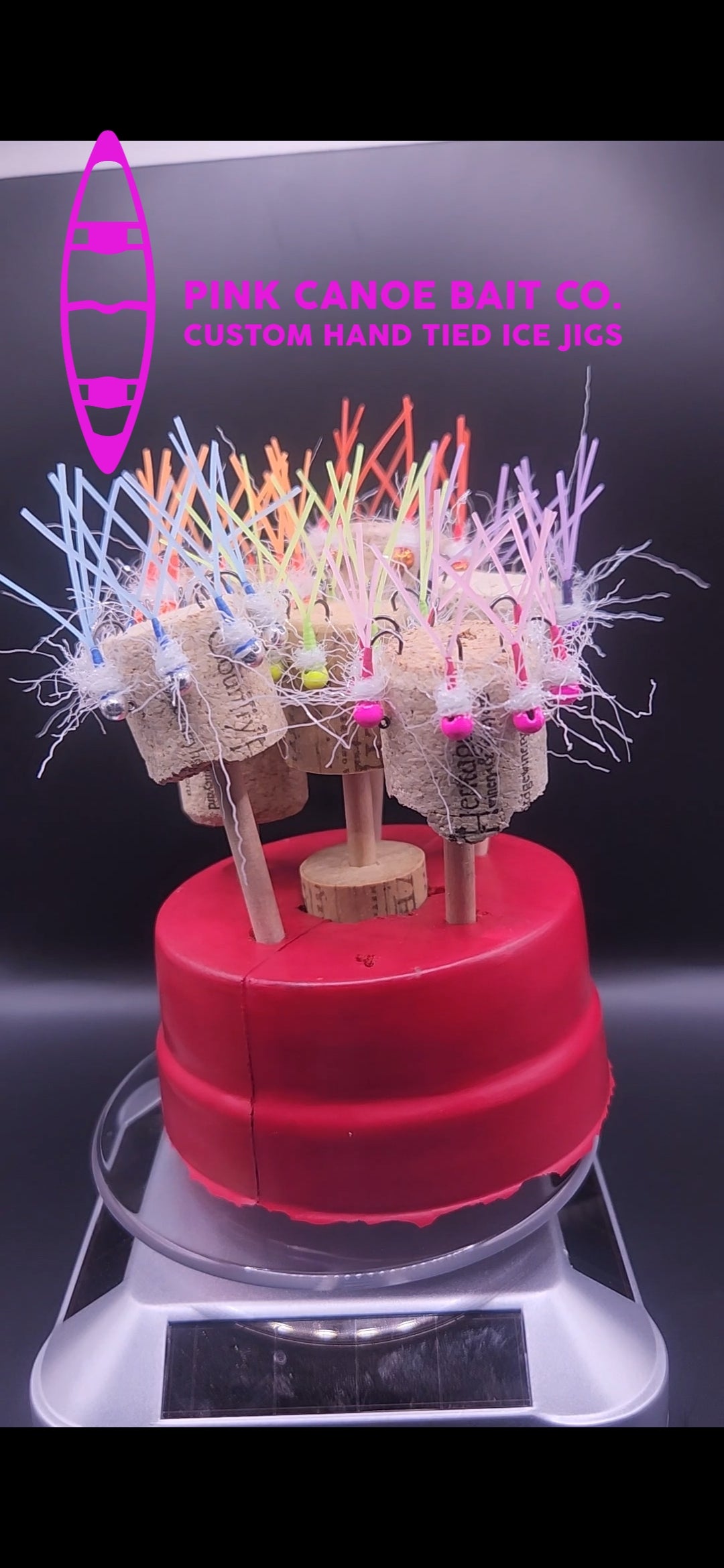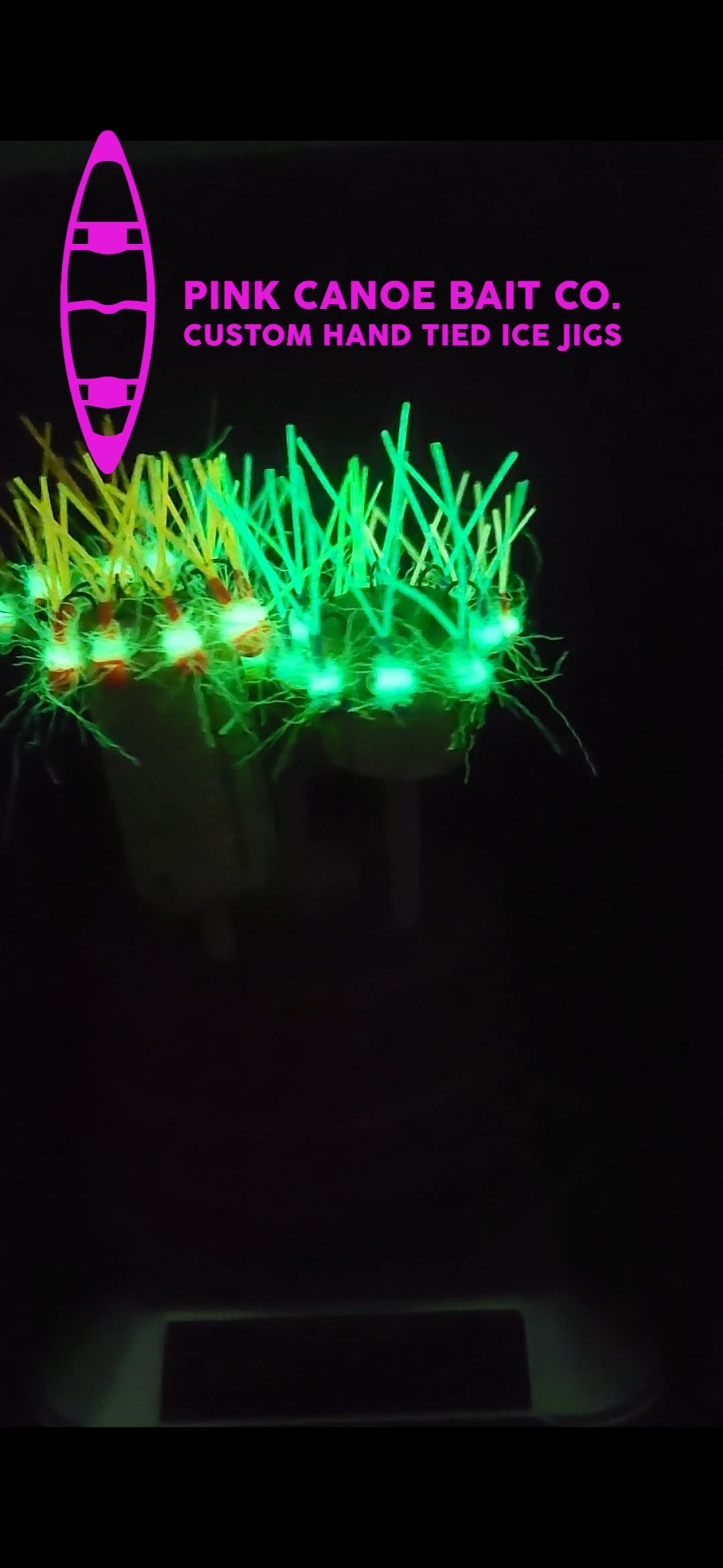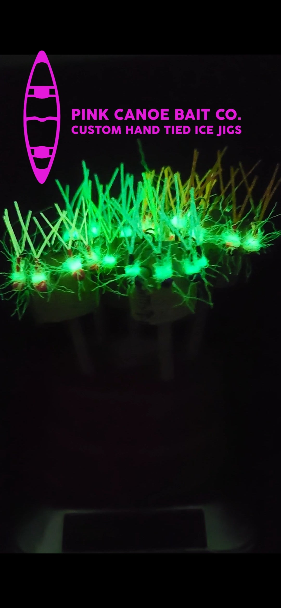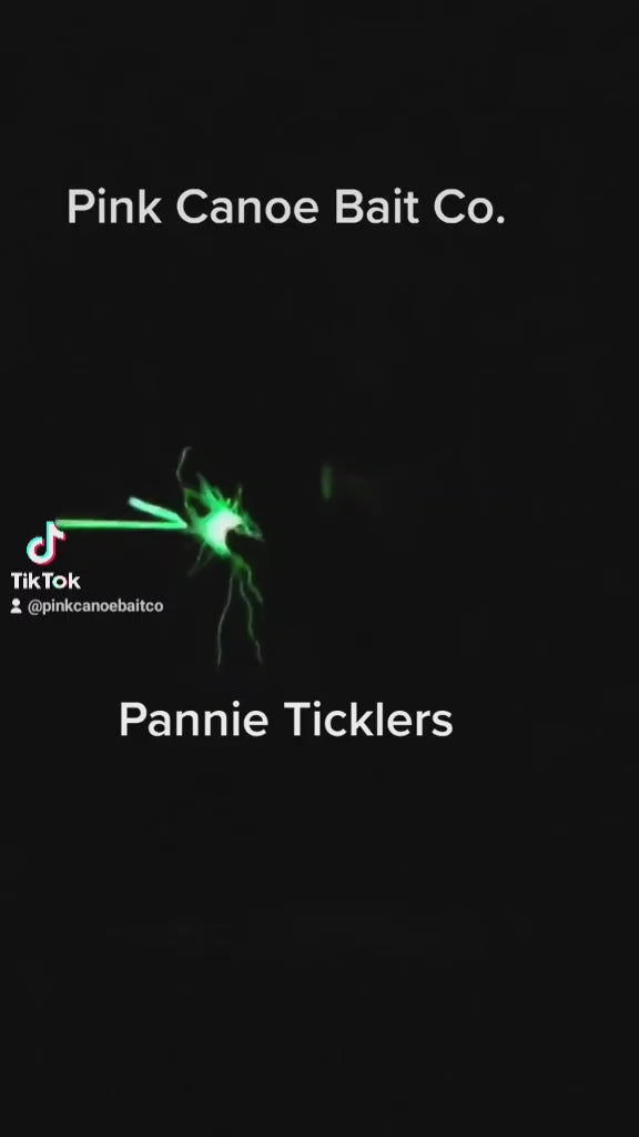 Pannie Ticklers are a split tailed tungsten jig, color matched thread, head, tail with a hairy glow collar. These were a new bait last season and they were HOT. The split tail really gives off a lot of action under the ice, and it seals the deal on finicky fish.
