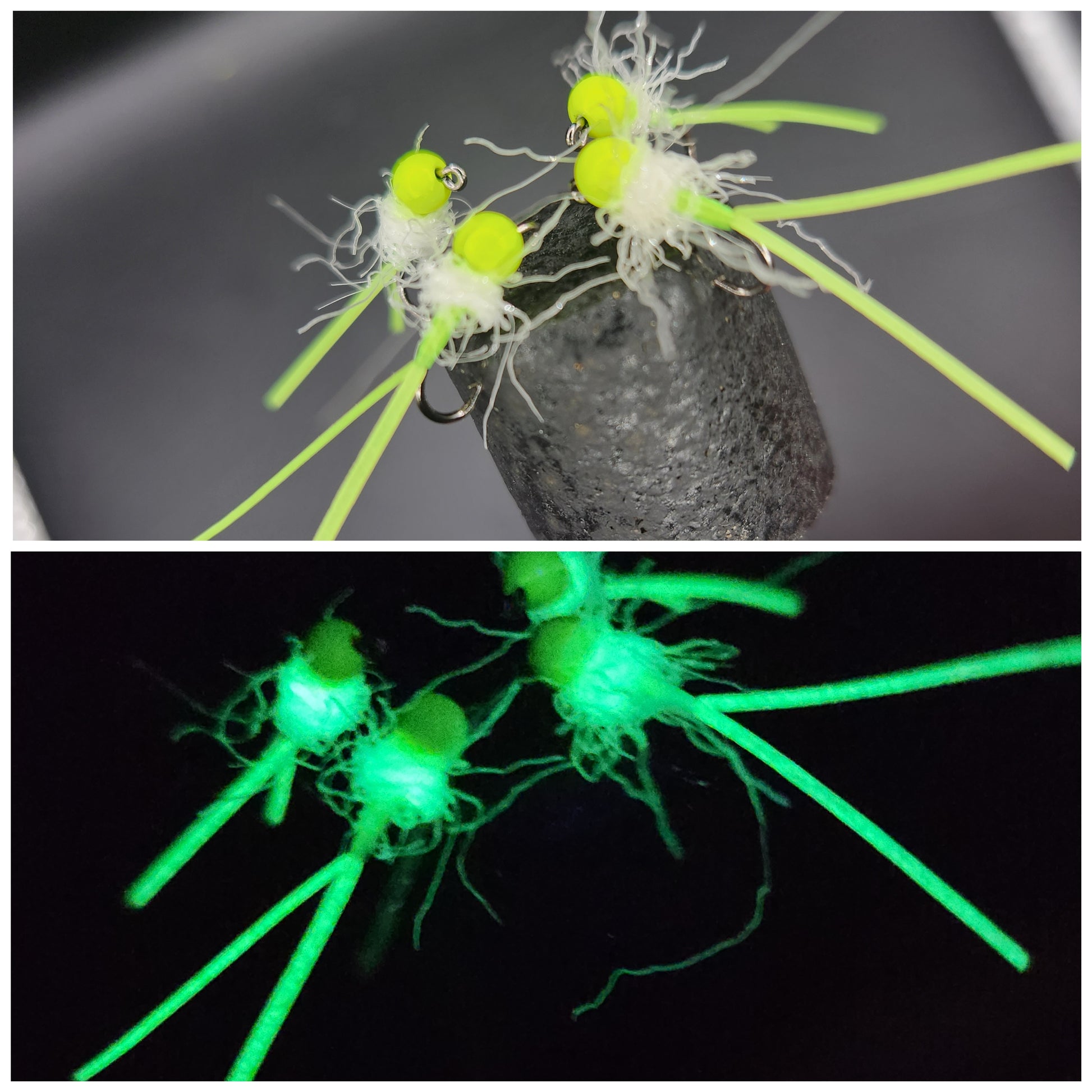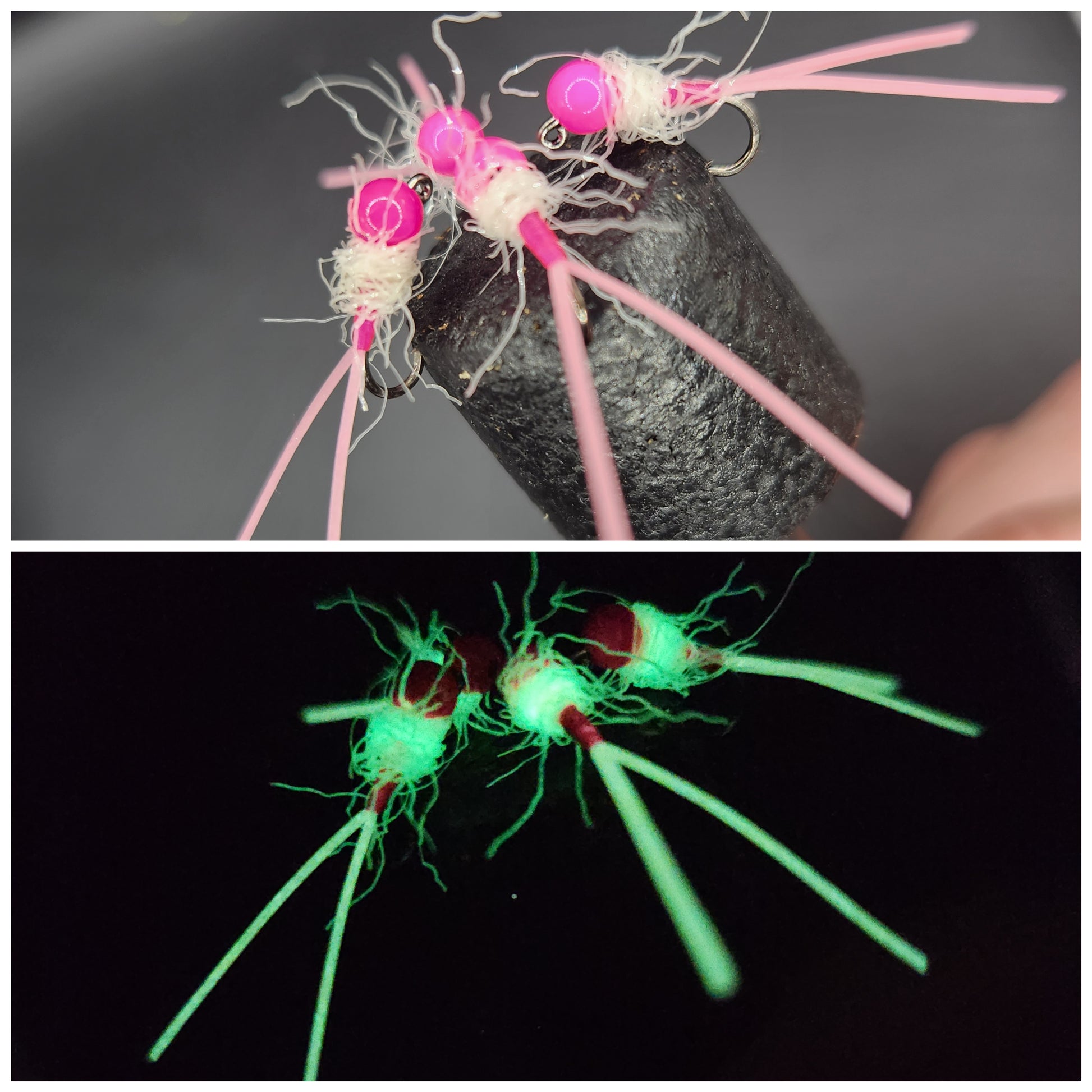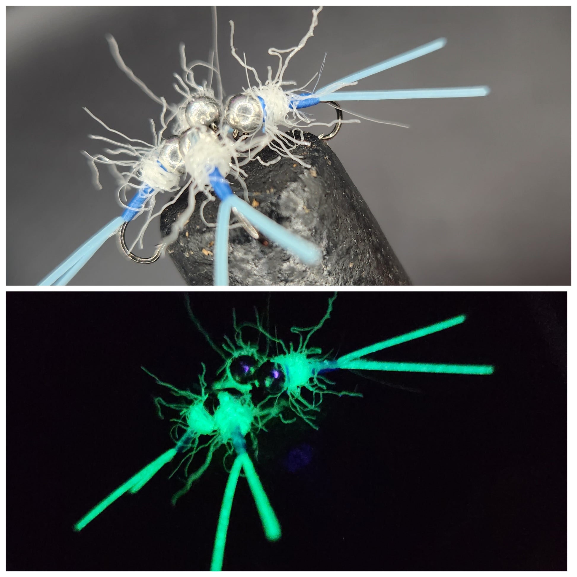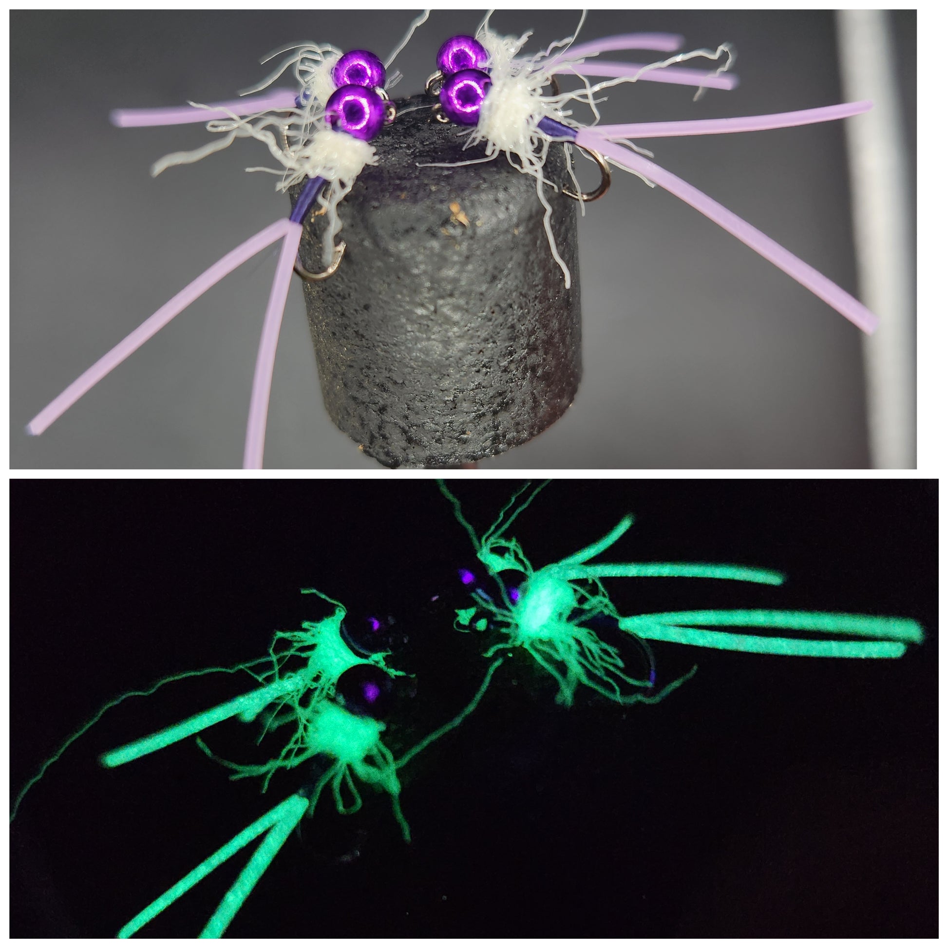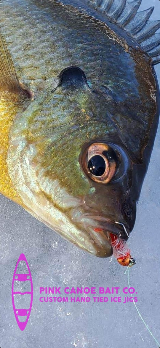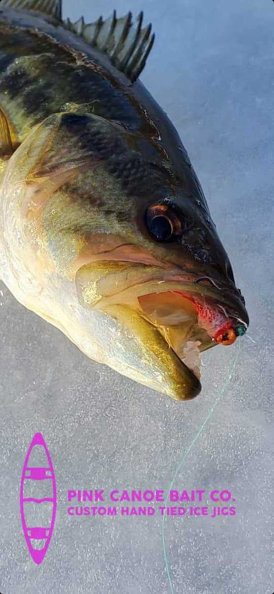 Pannie Ticklers are a split tailed tungsten jig, color matched thread, head, tail with a hairy glow collar. These were a new bait last season and they were HOT. The split tail really gives off a lot of action under the ice, and it seals the deal on finicky fish.