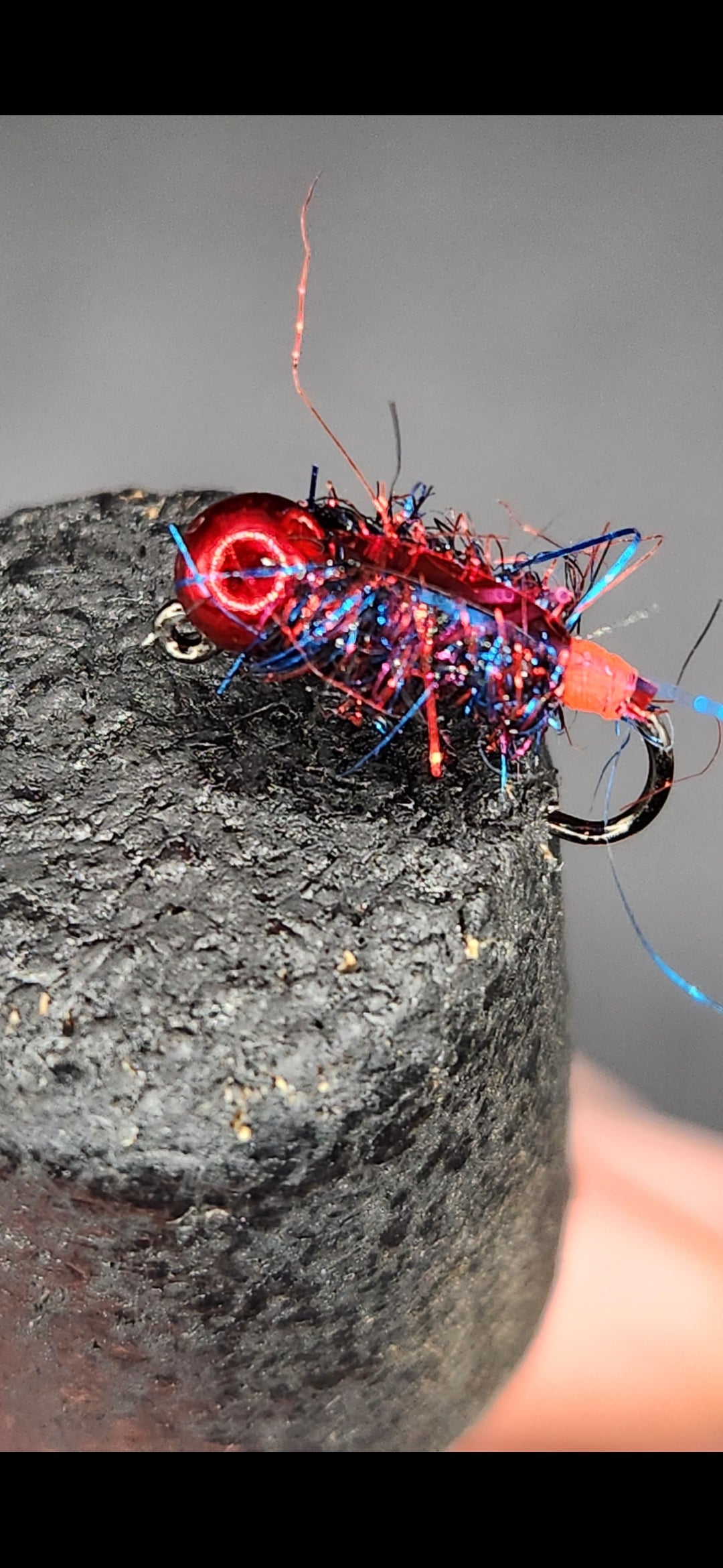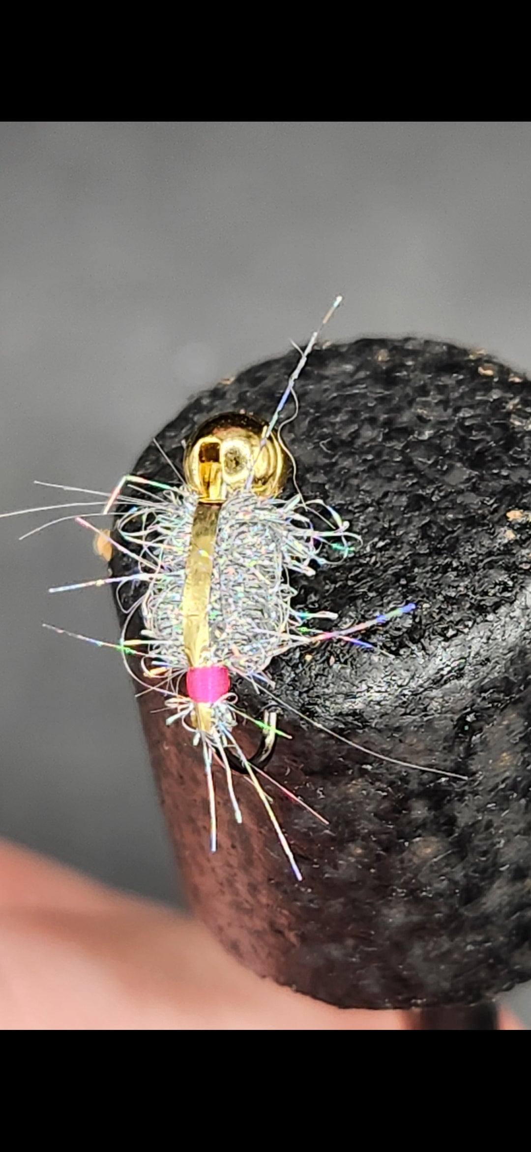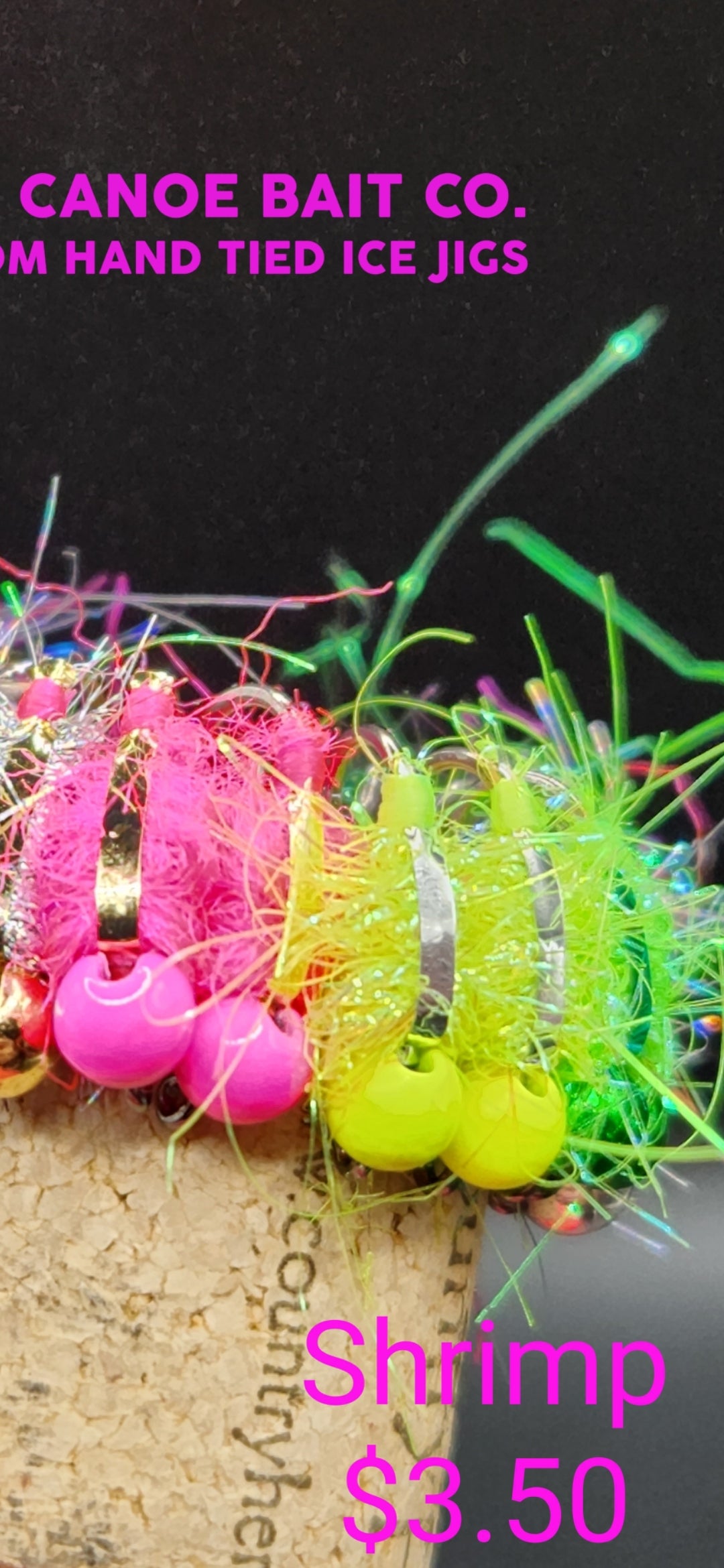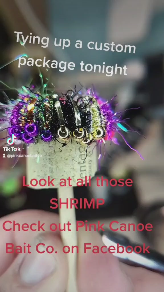 These baits are my version of a fresh water shrimp. They have tungsten heads, a hairy body and flash back that throws a reflection of light in the water.