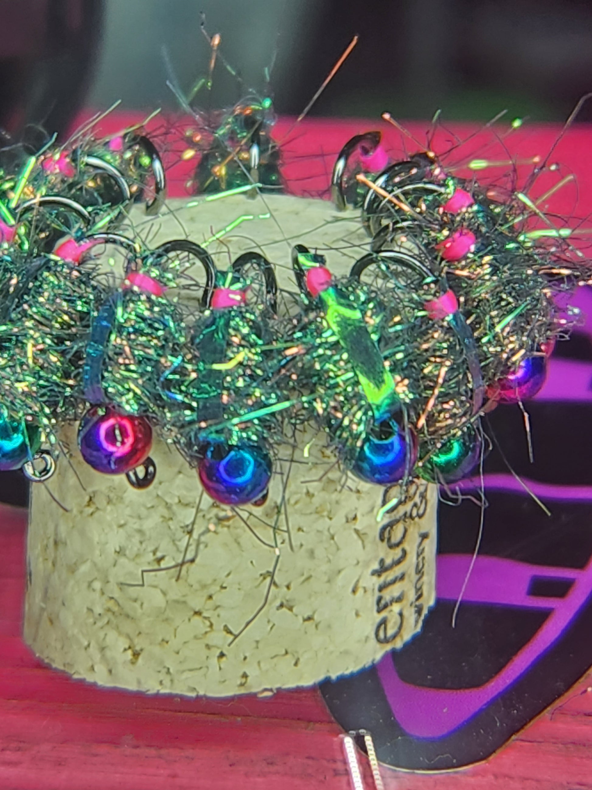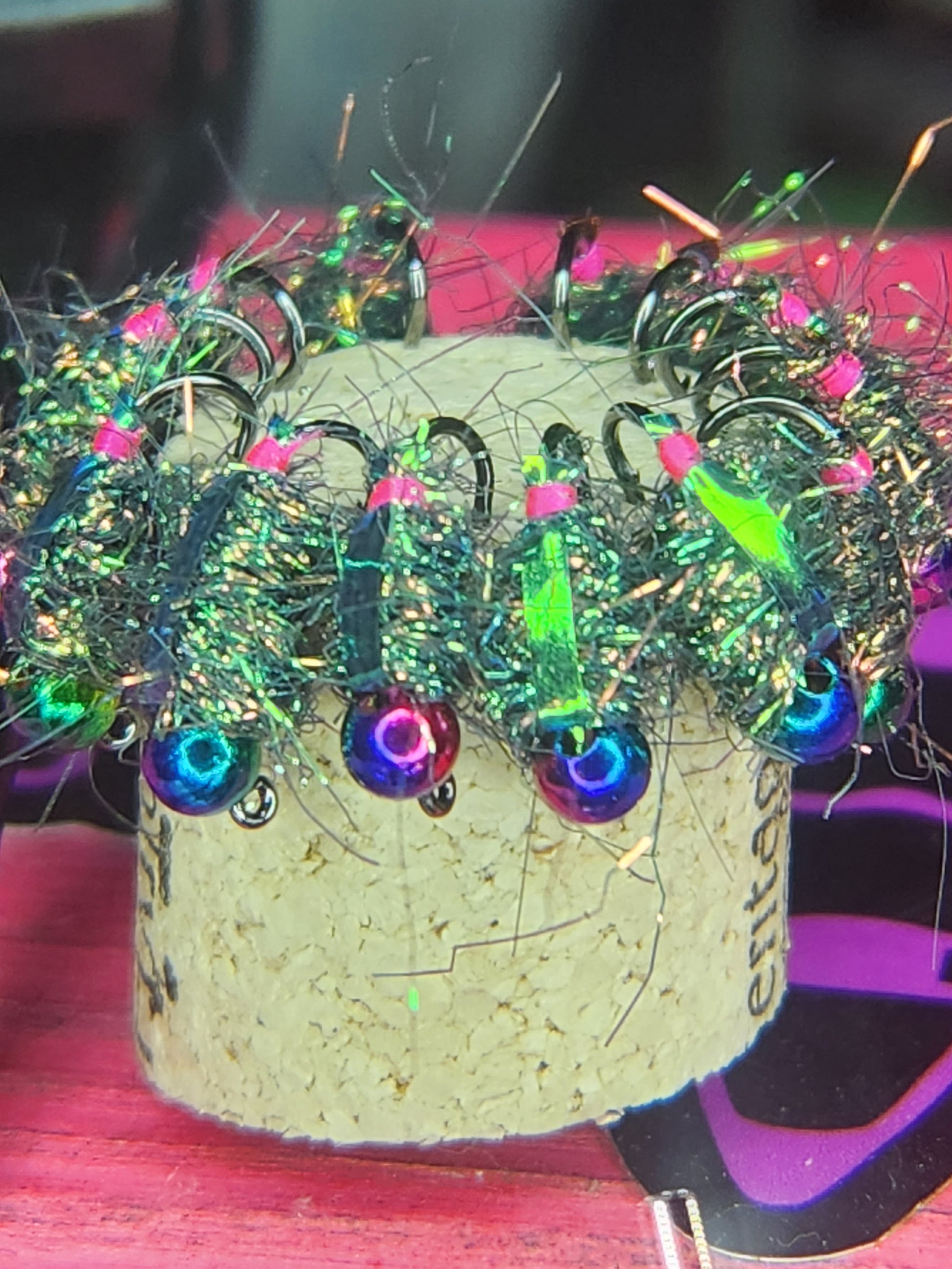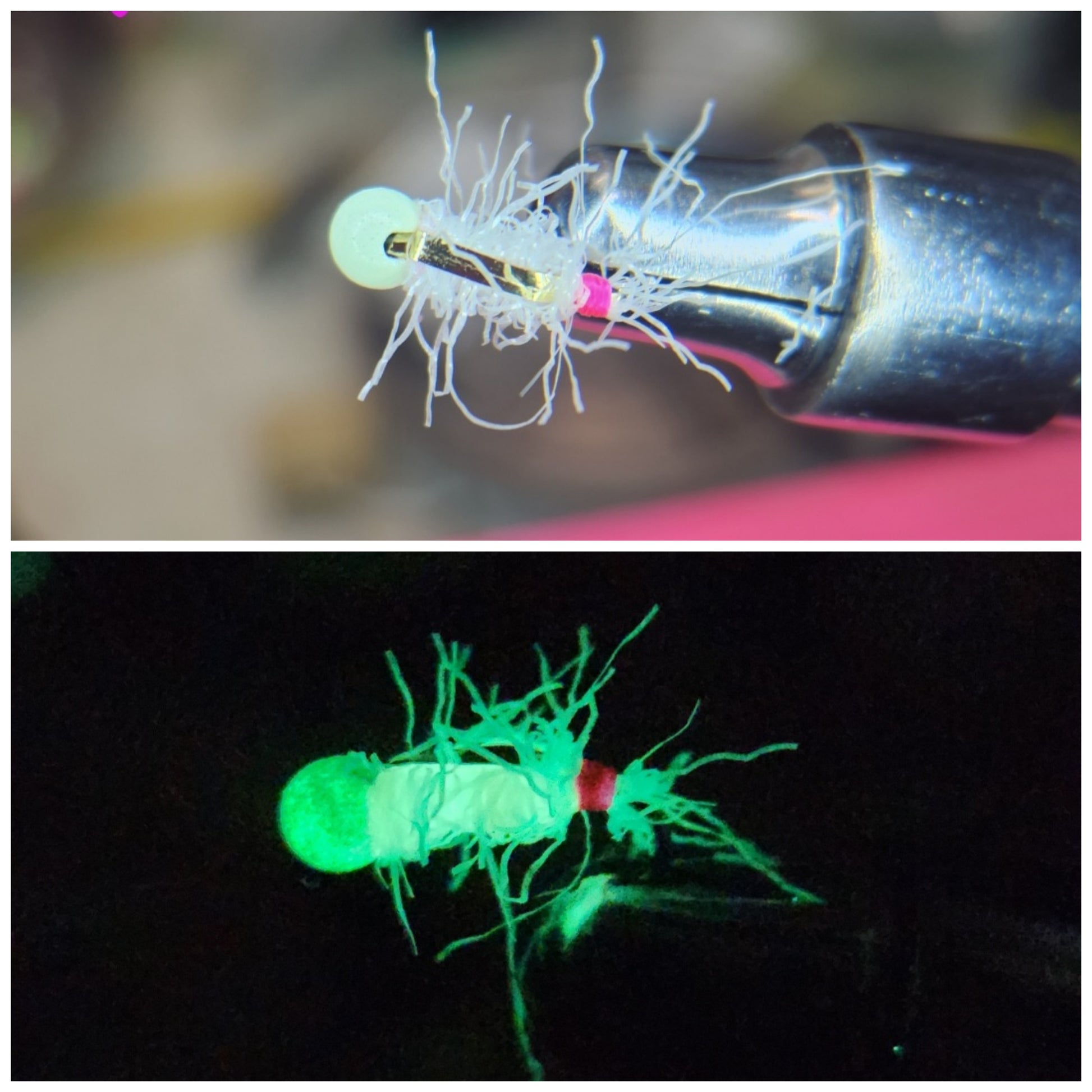 These baits are my version of a fresh water shrimp. They have tungsten heads, a hairy body and flash back that throws a reflection of light in the water.