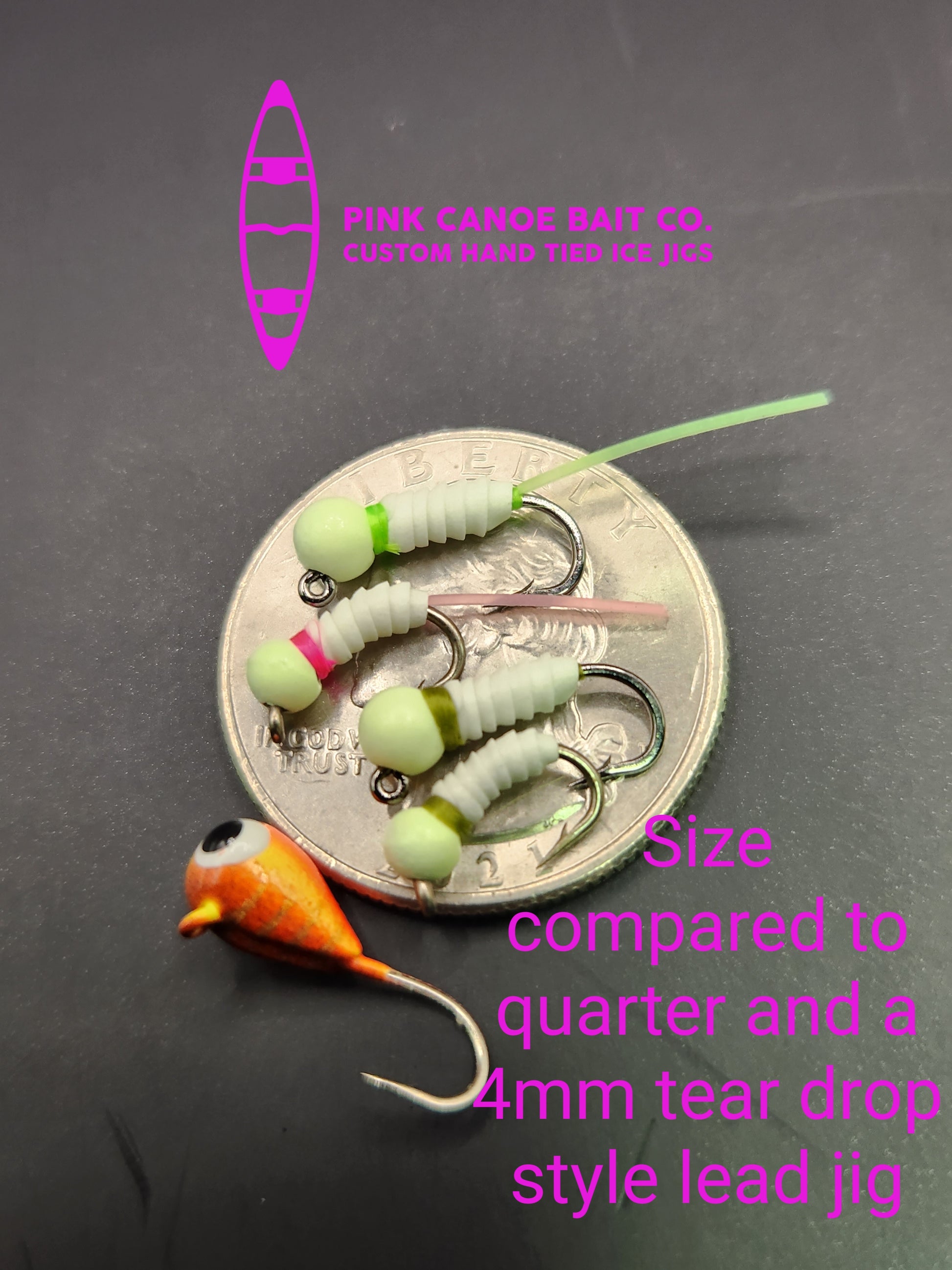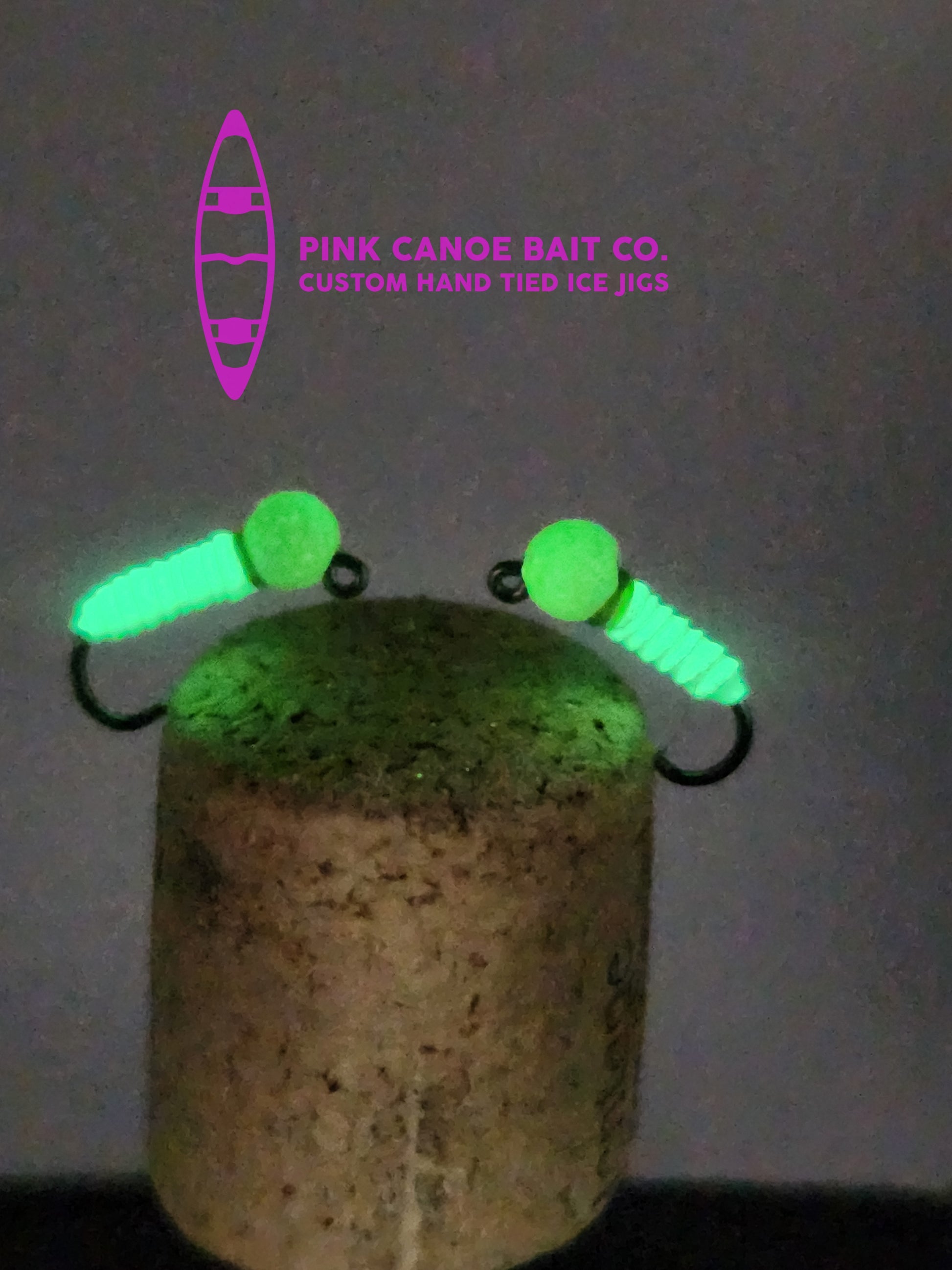 The jig that started it all. As natural looking to a wax worm as you can get without the real thing. Head and body glow when charged.
